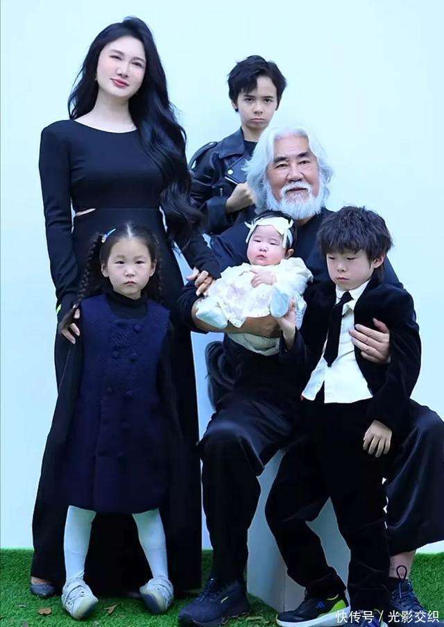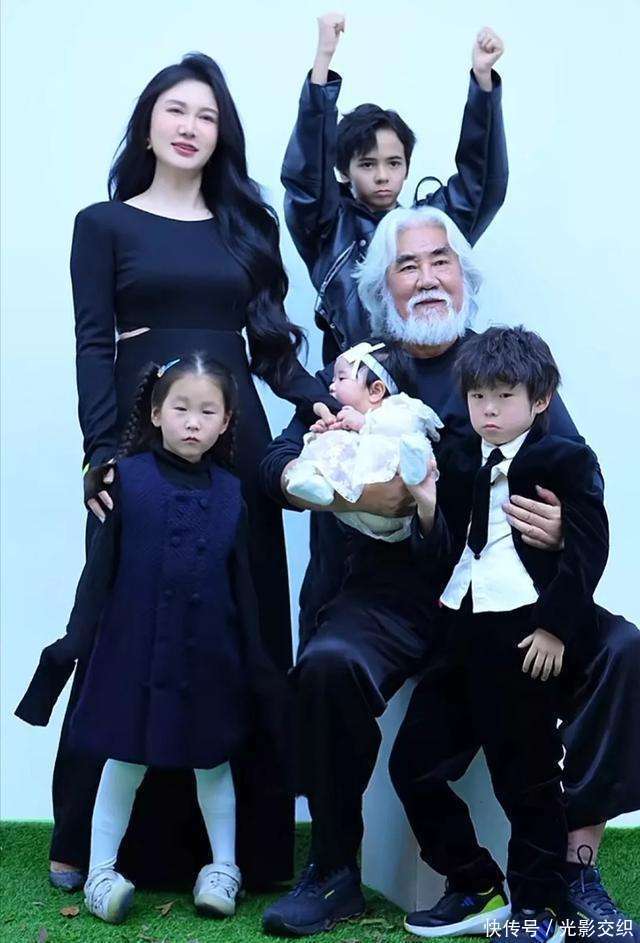 3月21日的时候啊,张纪中晒出了他们家的全家福。这一看可不得了,满满的都是温馨的感觉。照片里呢,74岁的张纪中那花白的头发和胡须特别抢镜。他一手抱着小女儿,一手搂着二儿子,脸上满是慈祥和蔼。再看这几个孩子,大儿子马丁那可是颜值担当啊,穿着黑色皮衣外套,又酷又帅,镜头感超强。还有嘟嘟、花花和小龙珠这三个小的,就跟复制粘贴似的,长得都像爸爸张纪中呢。杜星霖在全家福里也是格外的亮眼,她身穿黑色长裙,大波浪卷发,妆容精致,整个人显得高贵又优雅。虽然抱着孩子,但是那种优雅的气质一点都没丢。要知道,她生完小龙珠才半年呢,就能恢复得这么好,真是让人佩服。